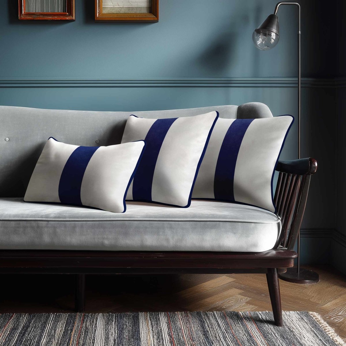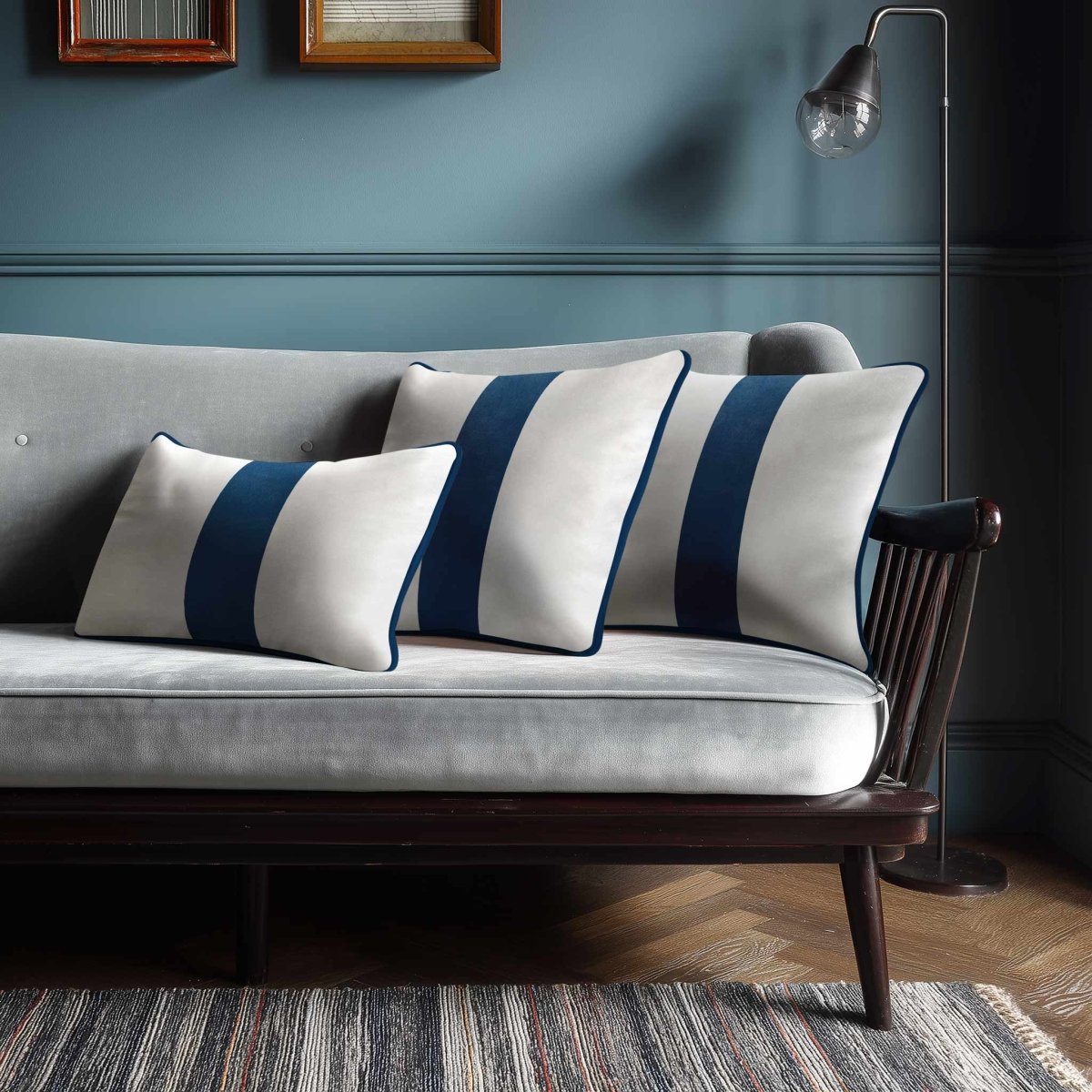 1 Stripe with Piping | Sustainable Velvet Rectangle Cushion