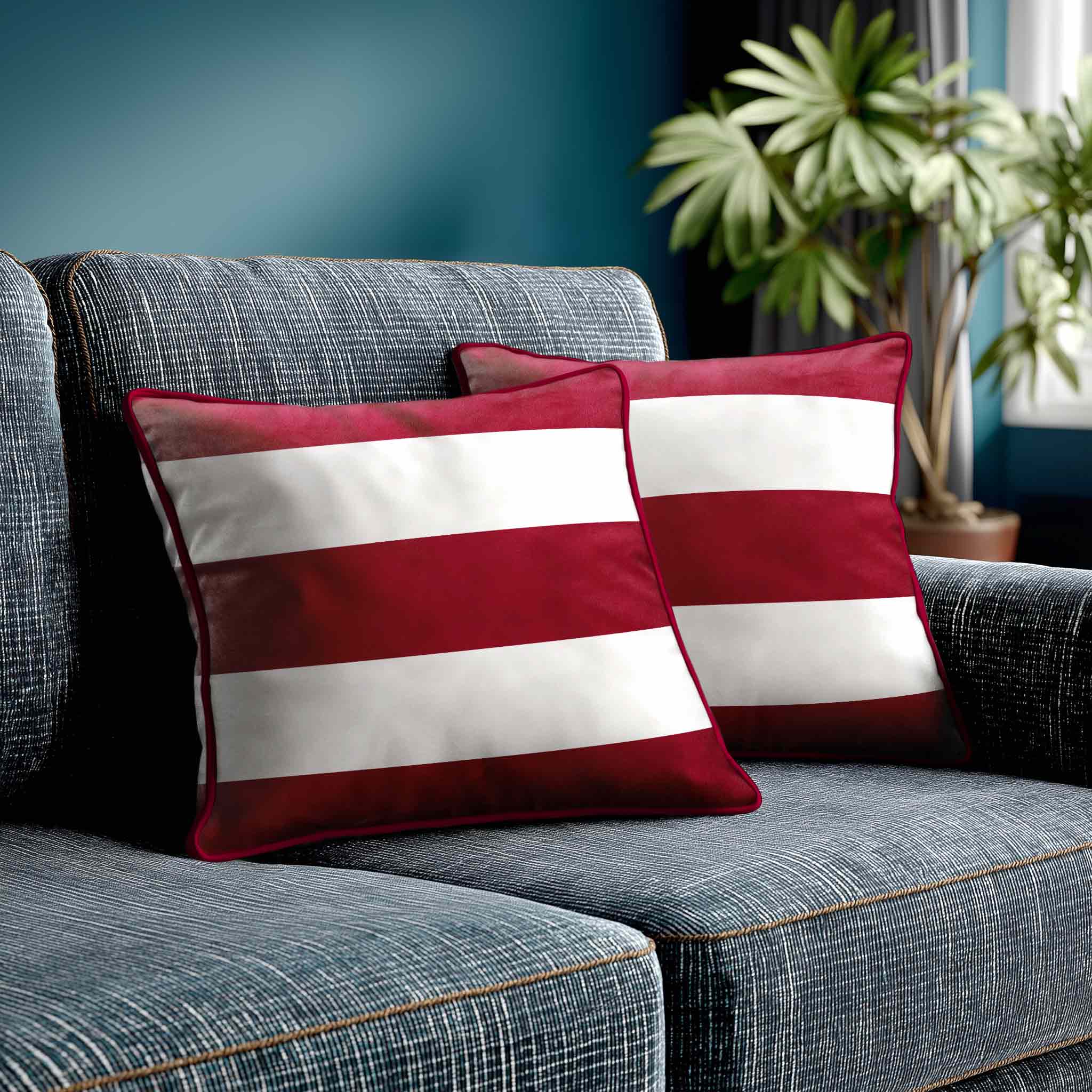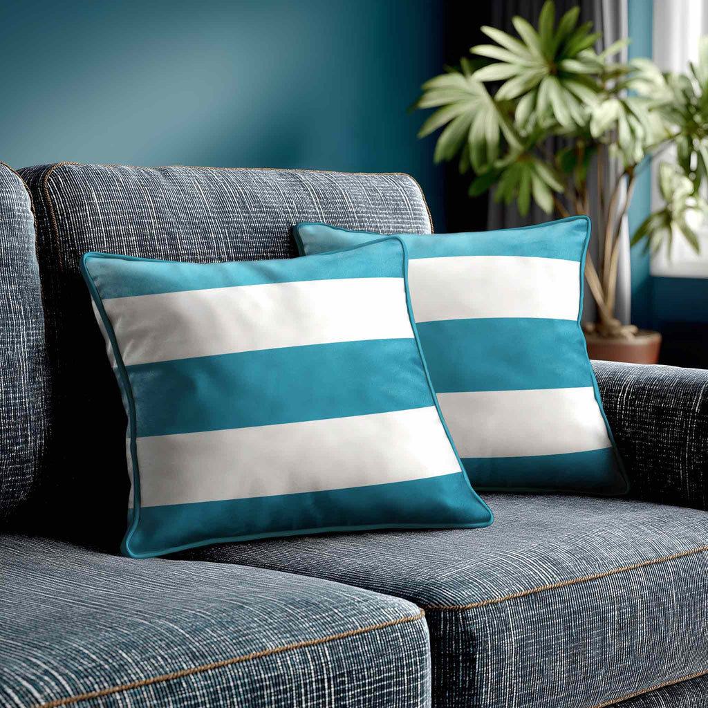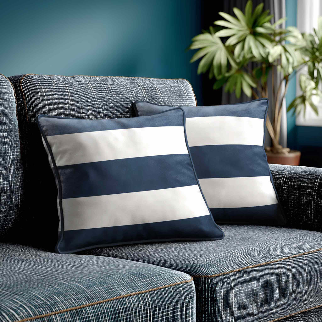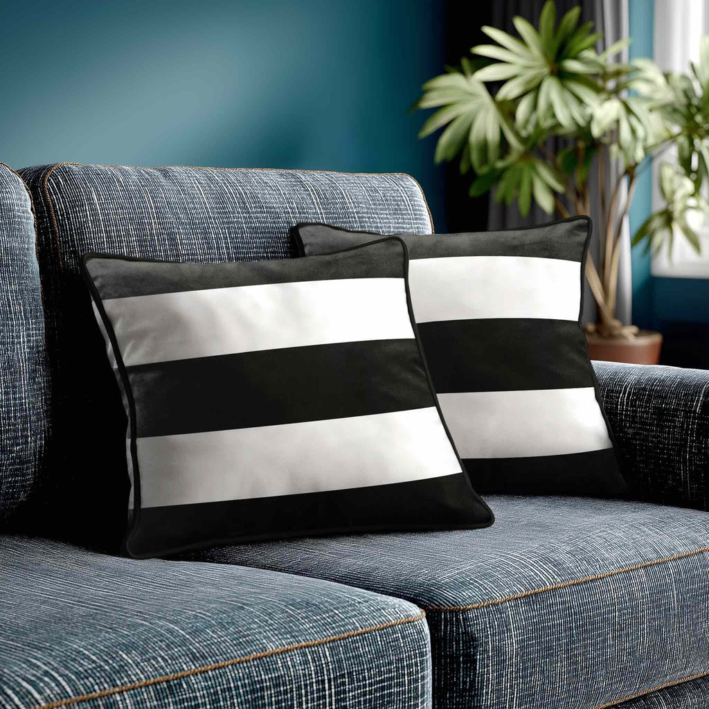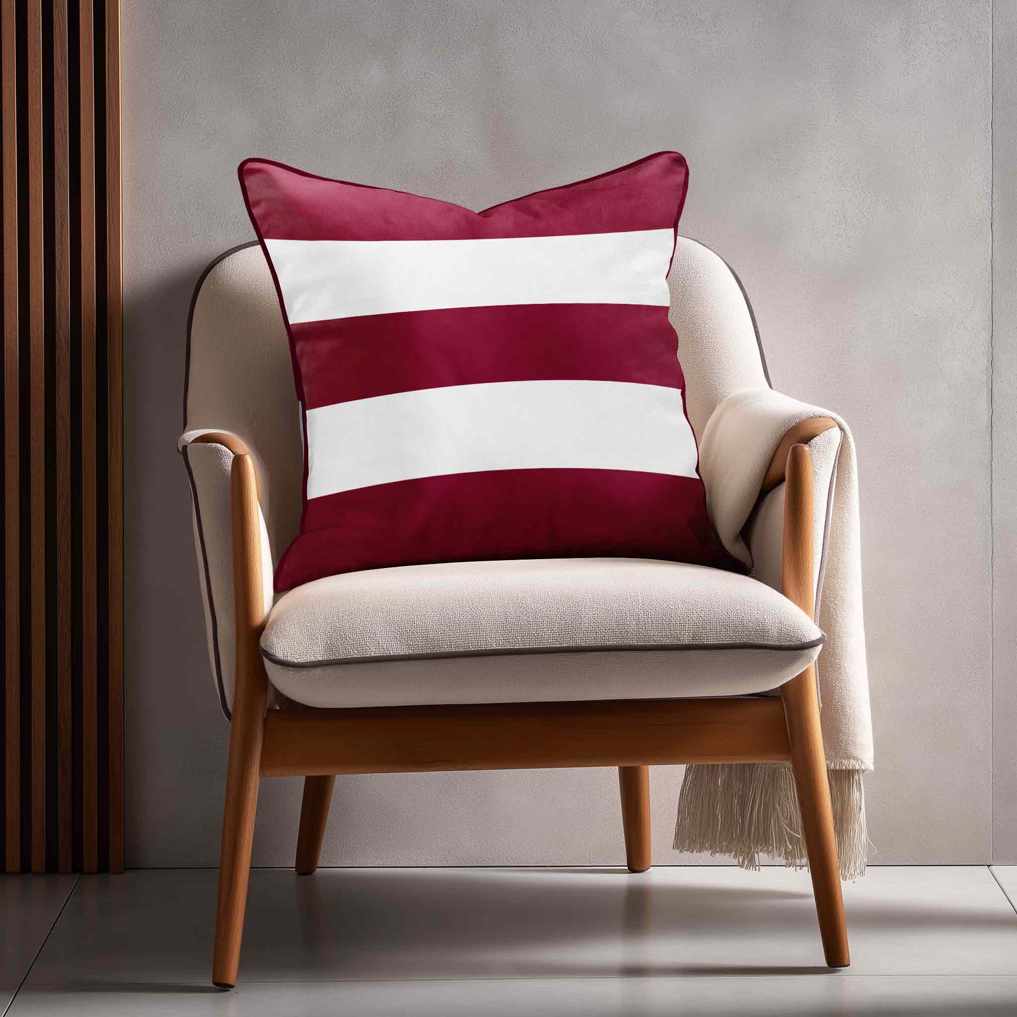 3 Stripes Horizontal | Sustainable Velvet Cushion with Piping