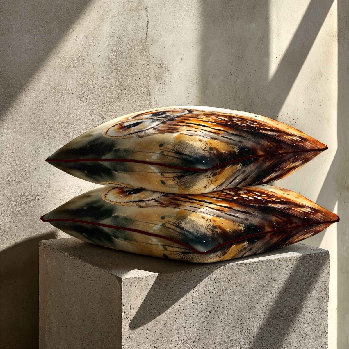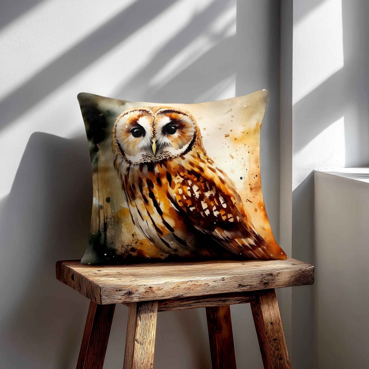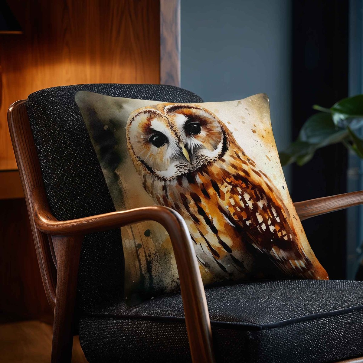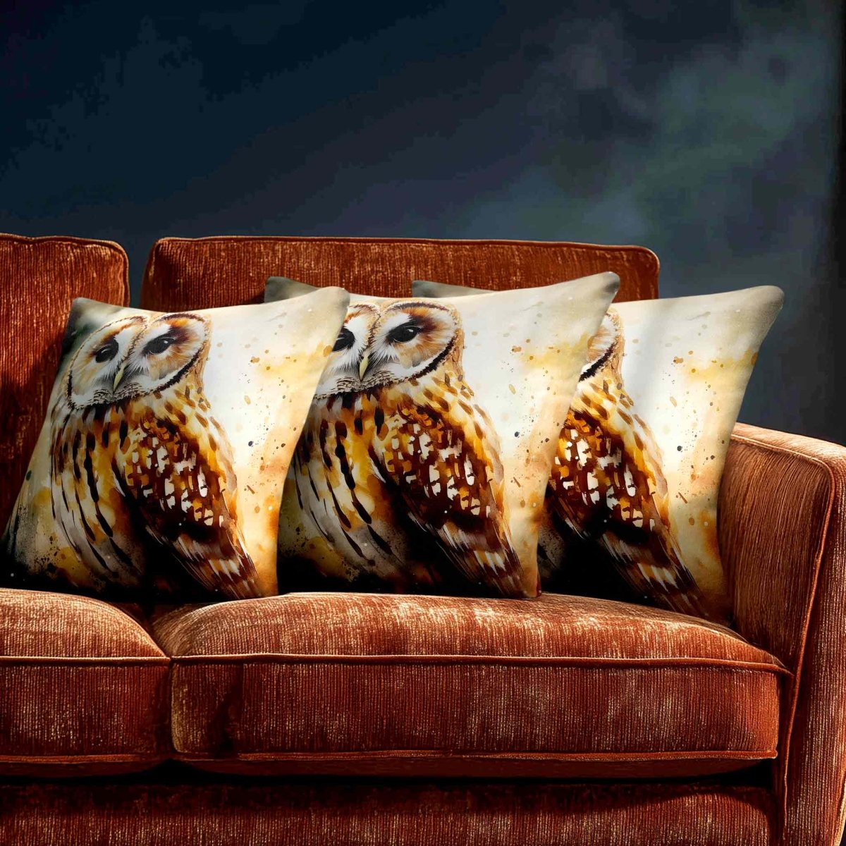 The Owl cushion captures a striking owl portrait in rich detail, turning a single panel into an elegant focal point. Its velvet texture gives softness and depth, balancing realism with warmth.