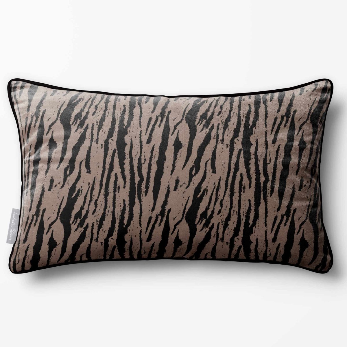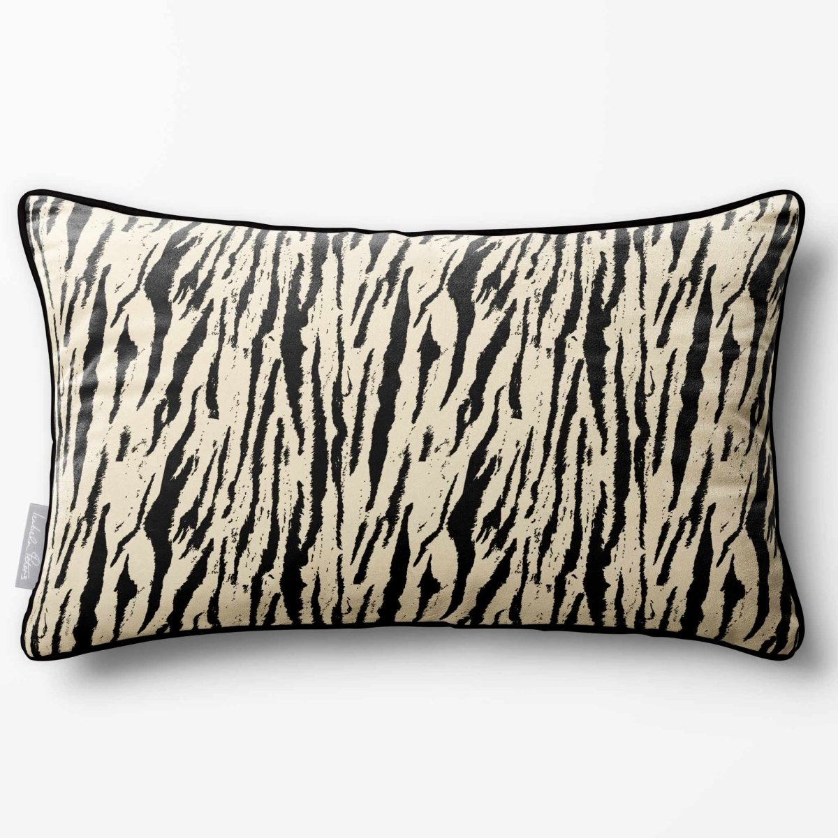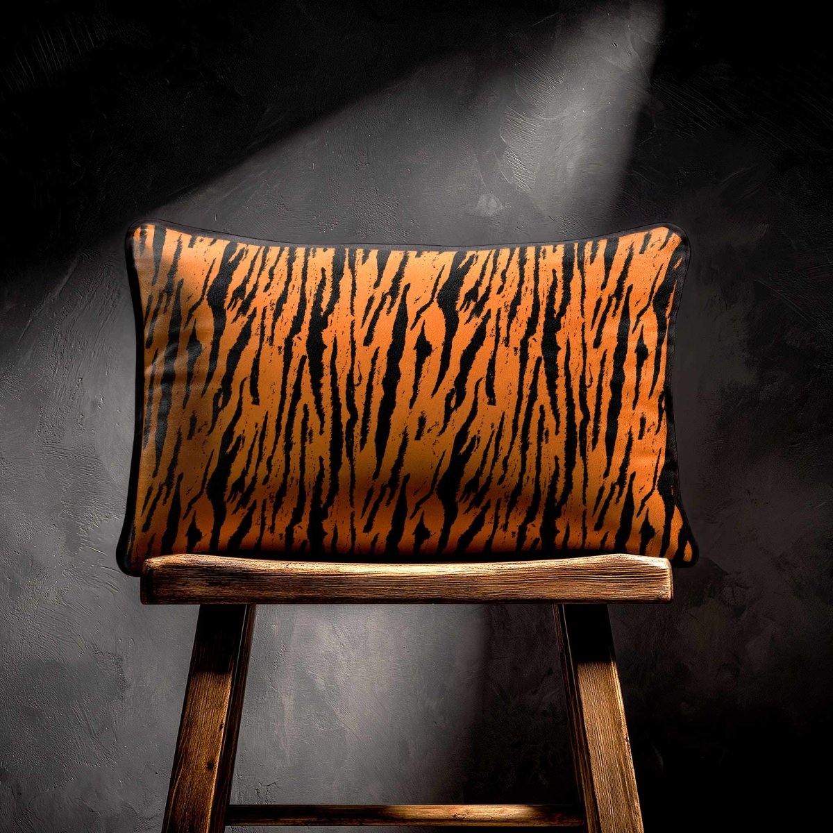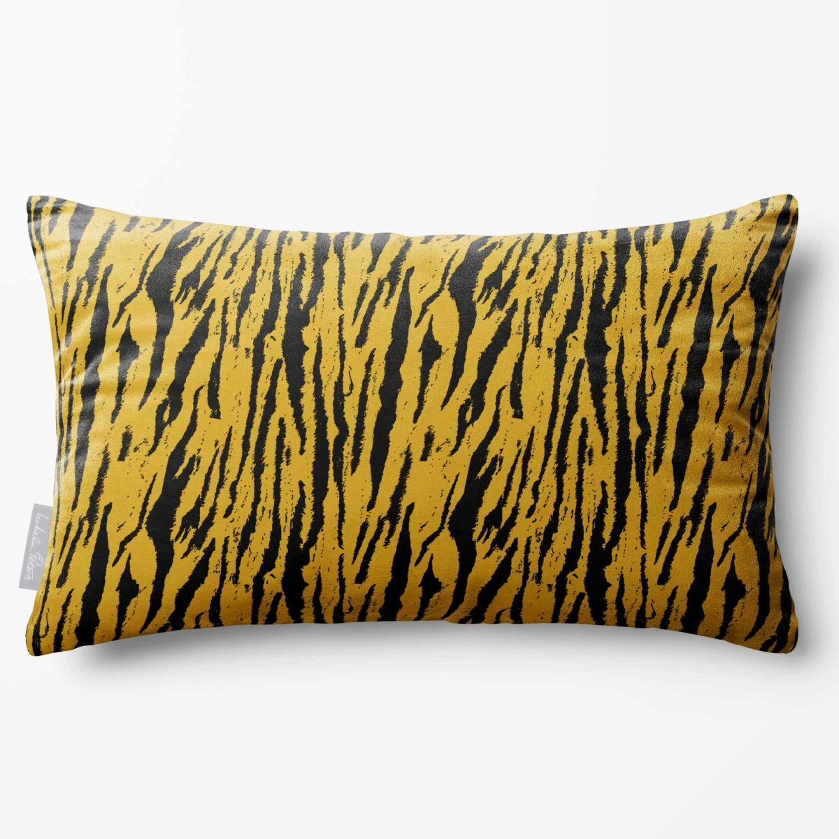 The Tiger Print rectangle cushion displays its bold stripe motif across a wide frame, making a confident statement in any room. The velvet finish adds softness and depth, balancing the strong design.