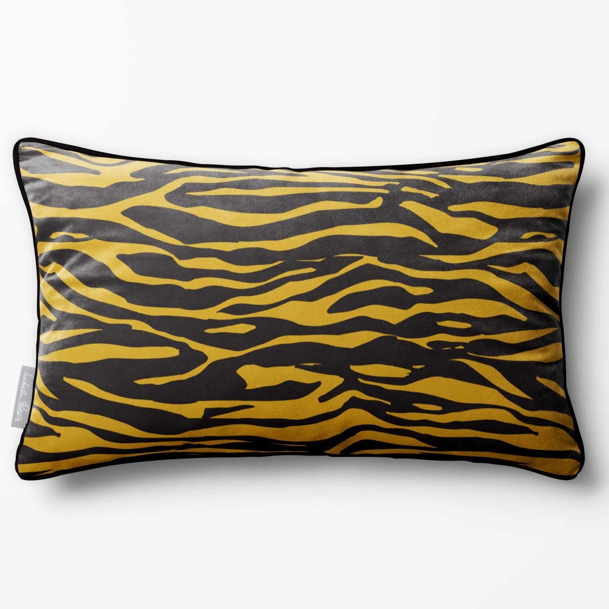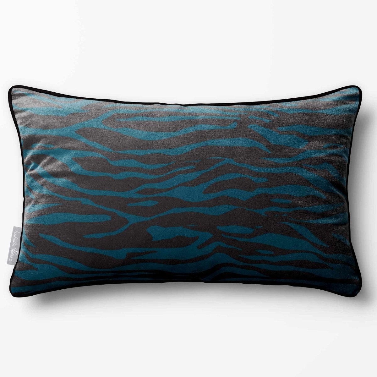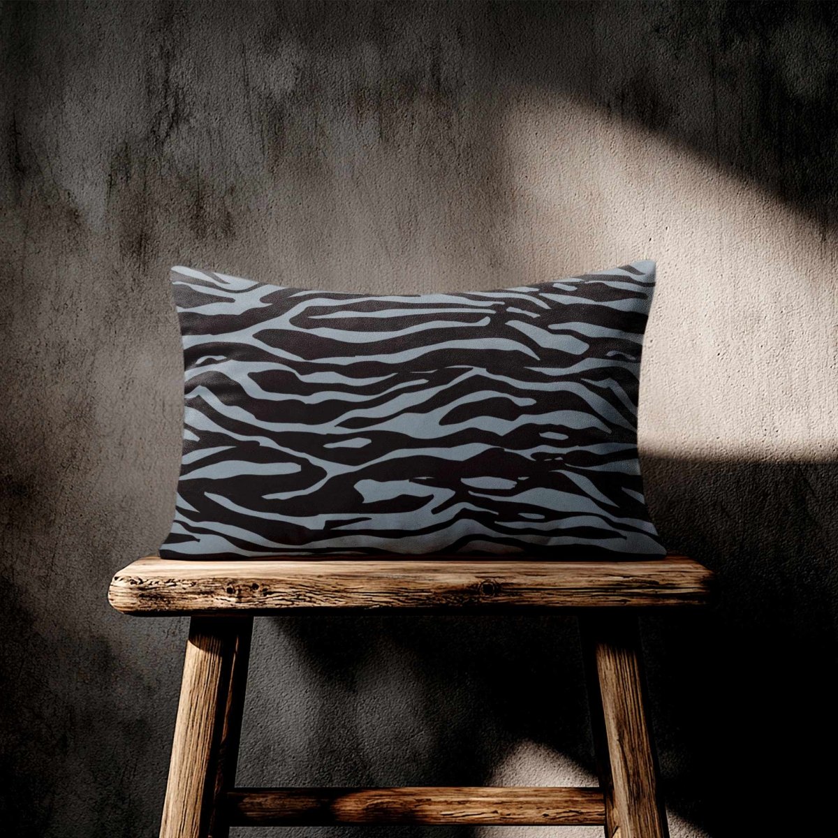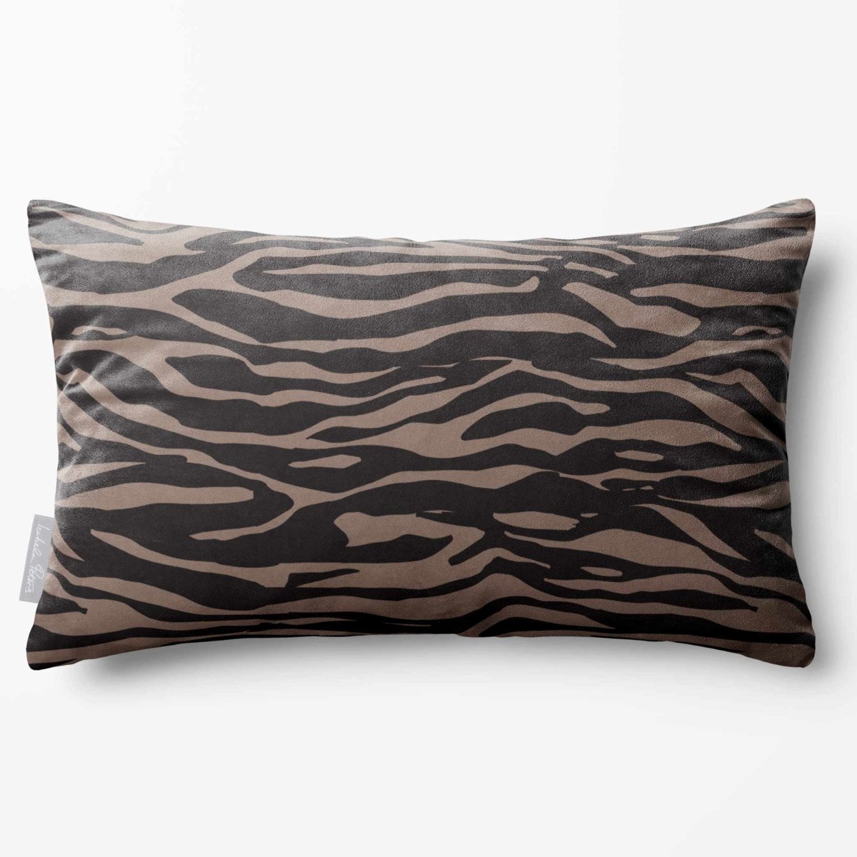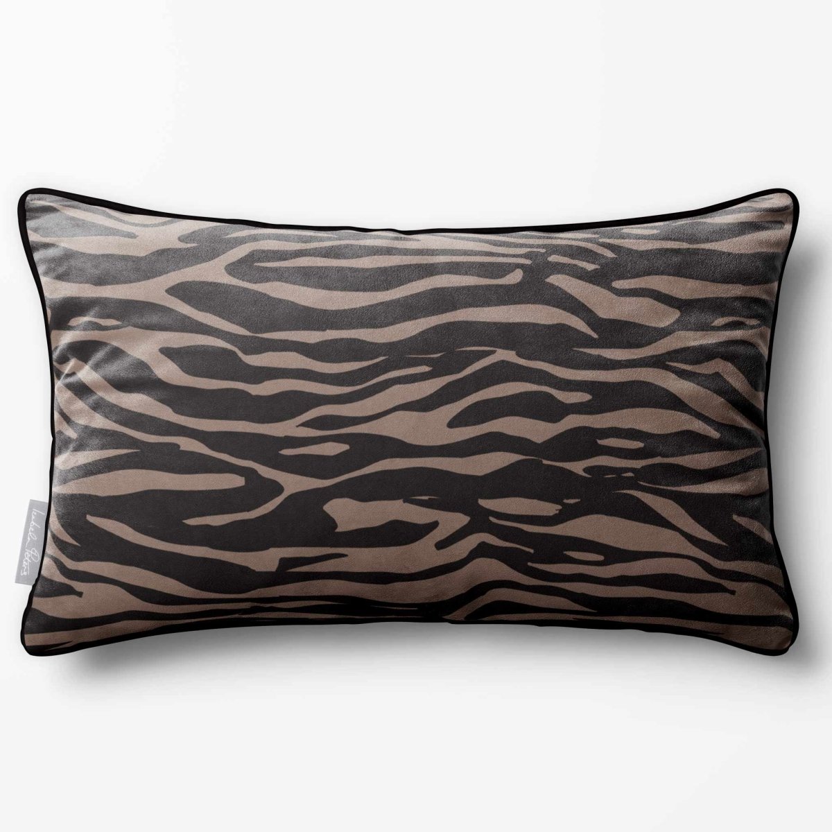 The Zebra Print rectangle cushion features a bold motif that stretches across a longer frame for a sleek, contemporary accent. The velvet base adds softness and depth to the dynamic design.