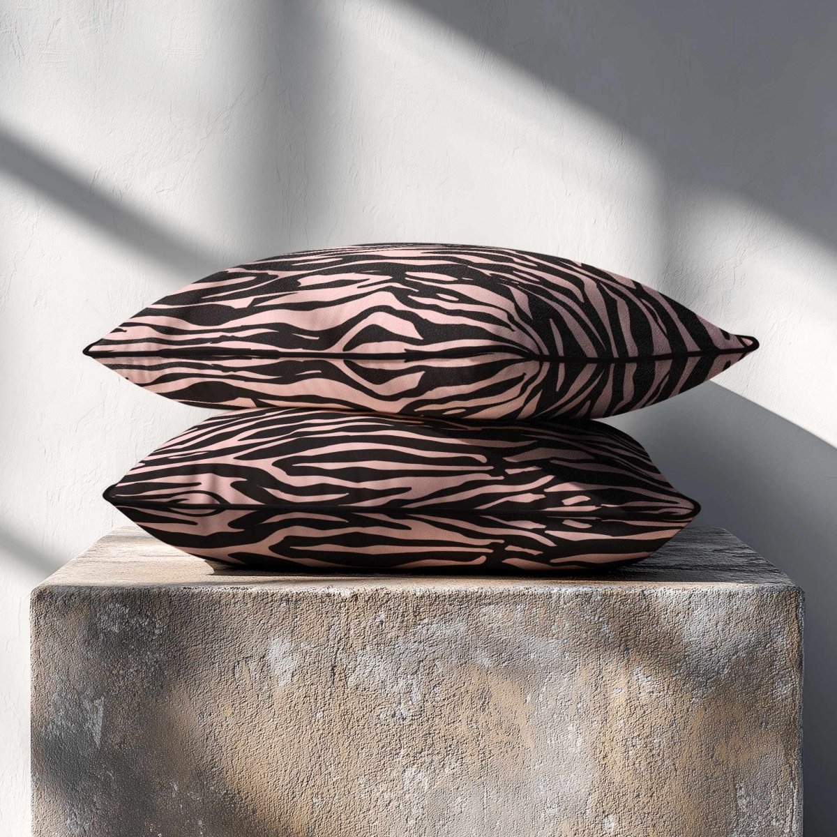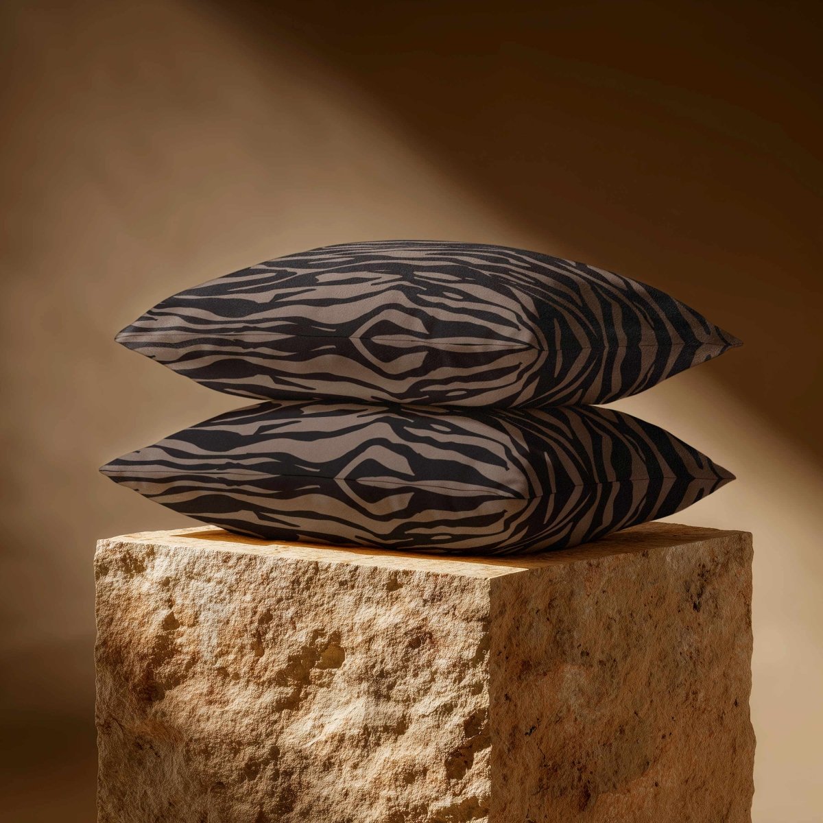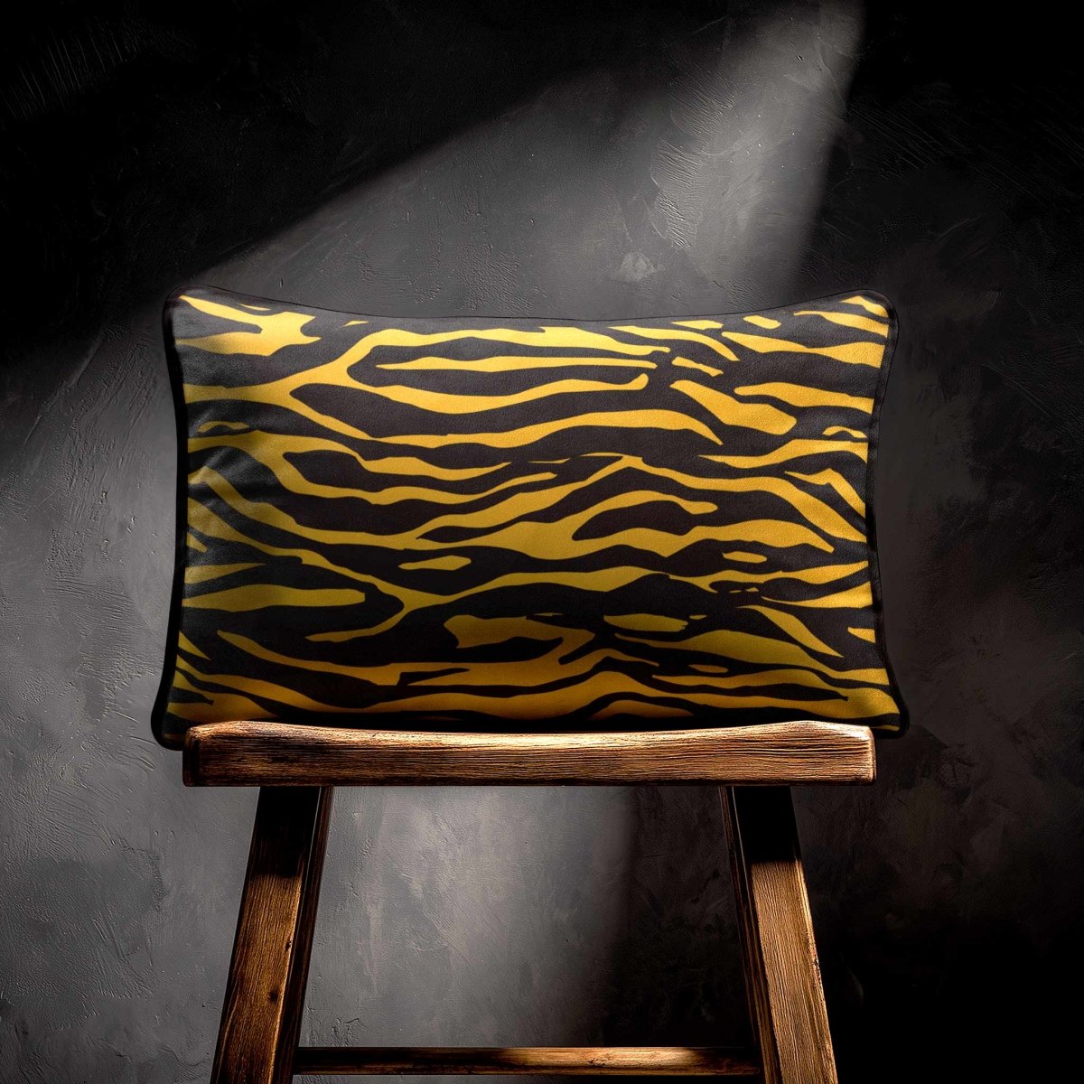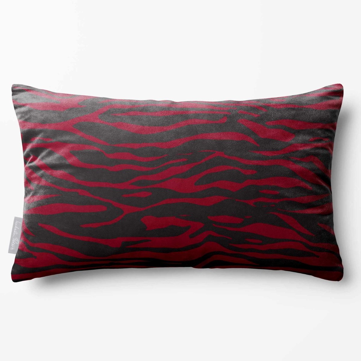 The Zebra Print rectangle cushion features a bold motif that stretches across a longer frame for a sleek, contemporary accent. The velvet base adds softness and depth to the dynamic design.